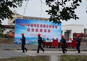 5月14日上午10點(diǎn),“2021年徽州區(qū)有限空間專項(xiàng)應(yīng)急救援演練”在我公司進(jìn)行,市應(yīng)急管理局副局長(zhǎng)吳永杰、副區(qū)長(zhǎng)范成林以及區(qū)應(yīng)急管理局、經(jīng)濟(jì)開發(fā)區(qū)、區(qū)衛(wèi)健委、區(qū)消防大隊(duì)等部門負(fù)責(zé)人到場(chǎng)指導(dǎo),園區(qū)23家化工企業(yè)50余人參加了觀摩。