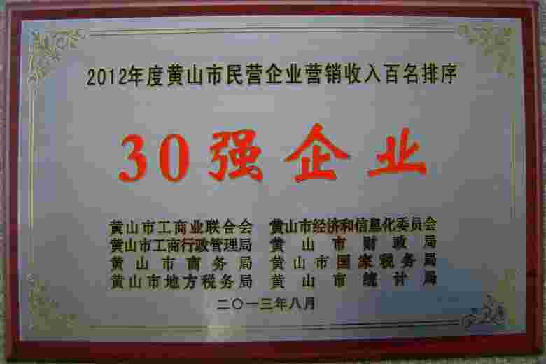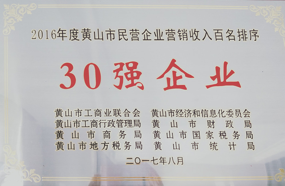 2016年黃山市民營企業(yè)營銷收入30強