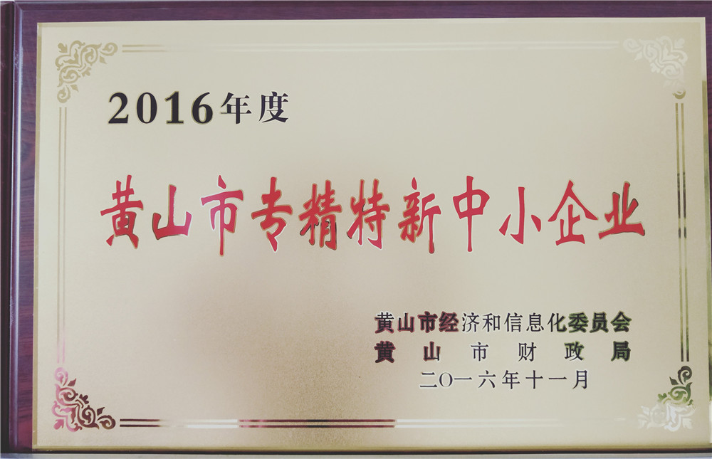 2016年度黃山市專精特新中小企業(yè)